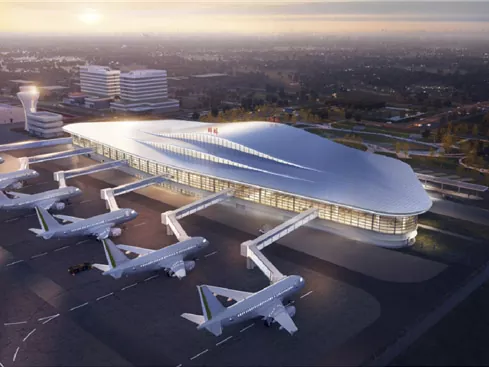 • Luchthaventerminal met stalen frameLuchthaventerminal met stalen frame