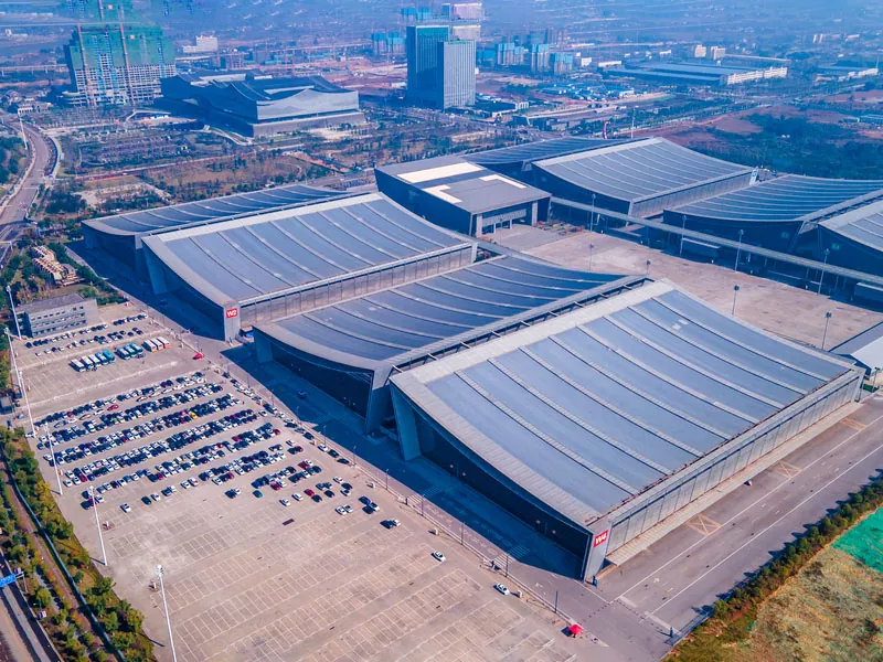 Geprefabriceerde metalen bouwstructuur Conferentiezalen gebruiken koudgevormde dunwandige stalen secties of H-vormig staal als het hoofdkader, en zijn fabrieksgeprefabriceerd en snel geassembleerd door gestandaardiseerd ontwerp. Hun structuur bestaat uit lichte stalen balken en kolommen, metalen dakpanelen en composietbodemplaten, met overspanningen variërend van 15 tot 30 meter. De binnenkolomvrije ruimte voldoet aan de eisen van de grote ruimte van conferentiehallen. Het modulaire ontwerp ondersteunt flexibele lay -out en latere expansie en heeft de voordelen van sterke seismische prestaties, korte bouwperioden en hoge materiaalrecyclebaarheid. Ze zijn op grote schaal van toepassing op tentoonstellingscentra, hoofdkantoor en openbare voorzieningen.