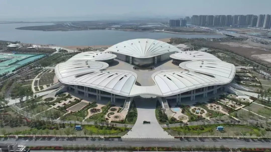 Gelegen in de Qingdao SCO -demonstratiezone, laat het prachtige SCO Pearl Expo Center een blijvende indruk achter langs Ruyi Lake. Van bovenaf bekeken, heeft zijn cirkelvormige "eenheid"-geïnspireerde ontwerp zeven onderling verbonden, shell-achtige witte daken gerangschikt. Ze creëren ritmische, golvende golven die elegant naar de hemel stijgen.