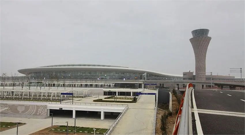 Een grote internationale gateway op 4E-niveau op 30 km van het centrum. De fase II -uitbreiding omvat luchthavenfaciliteiten, luchtverkeersleiding, brandstoftoevoer en bases voor Shandong Airlines & China Eastern Airlines.