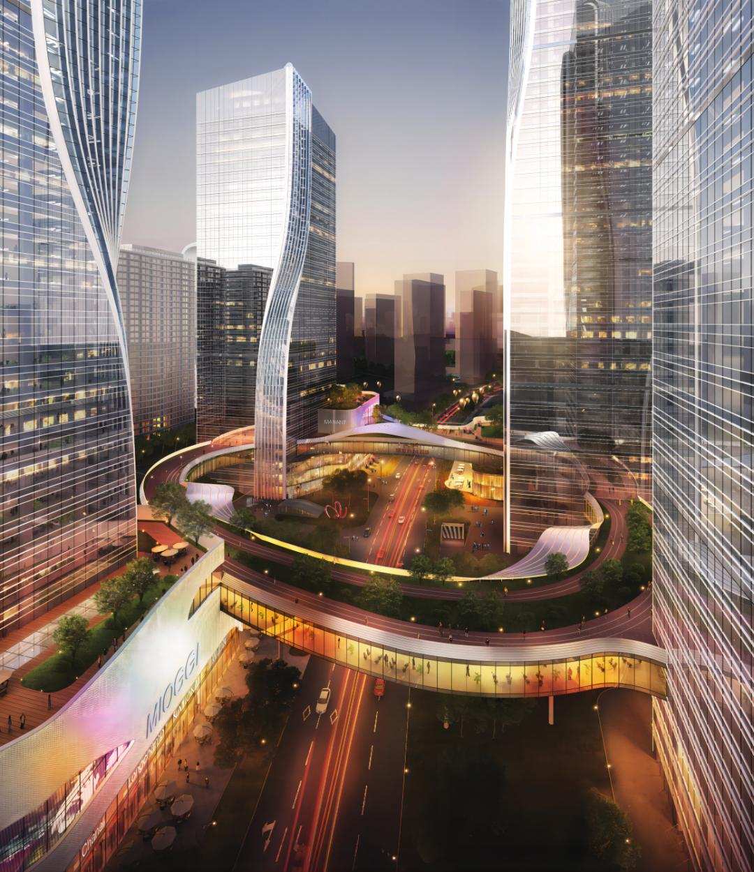 Dit complex met twee toren omvat 57 hectare met een totale vloeroppervlak van 220.000 m², die kantoren, hotels, winkels, dineren en entertainment integreren. De glazen vliesgevel, versierd met meer dan 7.200 meter gesynchroniseerde lichtstrips, creëren dynamische patronen over bijna 11.000 m² en leveren een krachtige visuele impact.