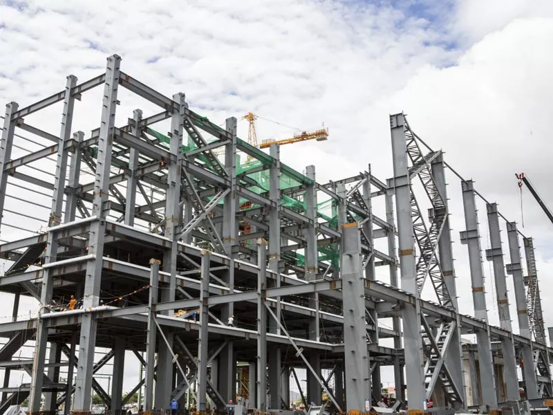 Stalen componenten, waaronder stralen, kolommen, beugels en dakspanten, worden geprefabriceerd in een fabrieksinstelling met staal van hoge kwaliteit. Deze componenten zijn gefabriceerd volgens precieze specificaties, waardoor ze tijdens de installatie nauwkeurig en veilig in elkaar passen. Het prefabricageproces omvat geavanceerde engineering- en lasprocedetechnieken om de kwaliteit en duurzaamheid van elk stuk te garanderen.