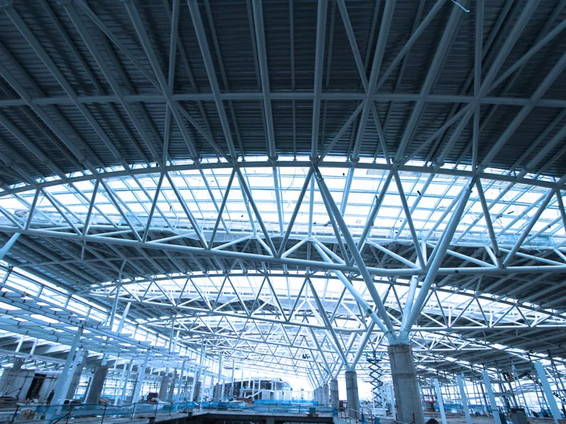 5. Dakbedekking en buitenbekleding Zodra het stalen frame voltooid is, wordt het dakbedekkingssysteem geïnstalleerd, meestal met behulp van geïsoleerde metalen panelen of enkellaags membraanmaterialen. Buitenmuren, indien opgenomen in het ontwerp, worden ook geïnstalleerd met metalen panelen, baksteen of andere bekledingsmaterialen.