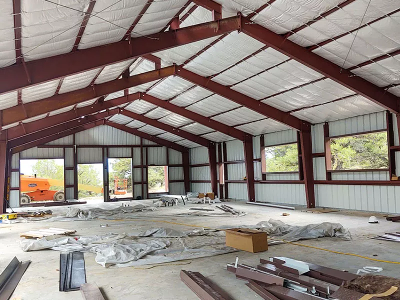 Dakbedekking en buitenbekleding:Zodra het stalen frame is voltooid, is het daksysteem geïnstalleerd, meestal bestaande uit geïsoleerde metaalpanelen of single-fy membraanmaterialen. Buitenwanden, indien opgenomen in het ontwerp, worden ook geïnstalleerd met behulp van materialen zoals metalen panelen of baksteen.