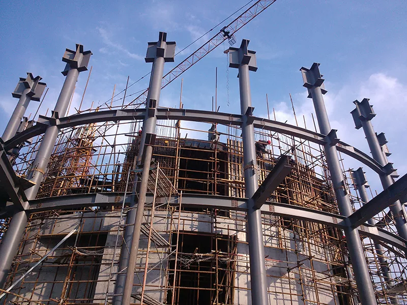 Geprefabriceerde stalen structuur High-Rise gebouwen zijn een nieuw type bouwvorm dat gebruik maakt van fabrieksgerichte gestandaardiseerde componenten zoals stalen balken en stalen kolommen als het kernbelastingssysteem, die ter plaatse worden geassembleerd via hoogwaardig bouten of lastechnologie. De lichtgewicht en hoogwaardig kenmerken van staal maken grotere spanningen en flexibele ruimtelijke lay-outs mogelijk, waardoor de zware wanden van traditionele betonnen structuren worden verminderd en het ruimtegebruik verbeteren. Tegelijkertijd voldoen ze aan de normen van de groene bouw - het stalen recyclingpercentage overschrijdt 95%en on -site bouwstof wordt met 70%verminderd. Ze worden veel gebruikt in kantoorgebouwen, appartementen, hotels en andere hoogbouw meer dan 100 meter, met representatieve gevallen, waaronder de buitenste structuur van de kernbuis van Shanghai Tower en Shenzhen Ping een financieel centrum.
