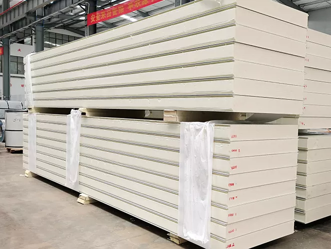 EIHE STEEL STRUCTURE is een fabrikant en leverancier van PU-sandwichpanelen in China. Wij zijn al 20 jaar gespecialiseerd in PU Sandwich Panel House. Deze panelen bieden uitstekende thermische isolatie, geluidsisolatie en structurele sterkte, waardoor ze geschikt zijn voor gebruik in verschillende bouwtoepassingen, waaronder huizen, schuren, schuren en andere gebouwen.