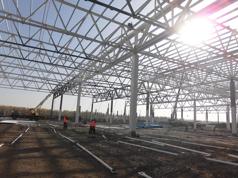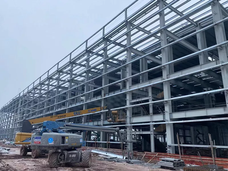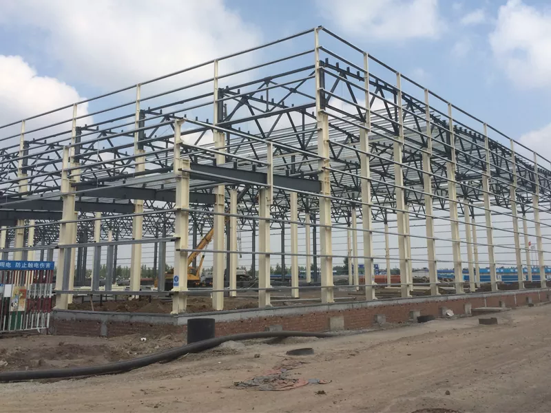 Het stalen frame van de workshop bestaat meestal uit kolommen, balken en beugels, die onderling verbonden zijn om een ​​rigide en stabiele structuur te vormen. De stalen leden worden vaak geprefabriceerd in een fabriek en vervolgens naar de site getransporteerd voor montage, waardoor de bouwtijd aanzienlijk wordt verkort.